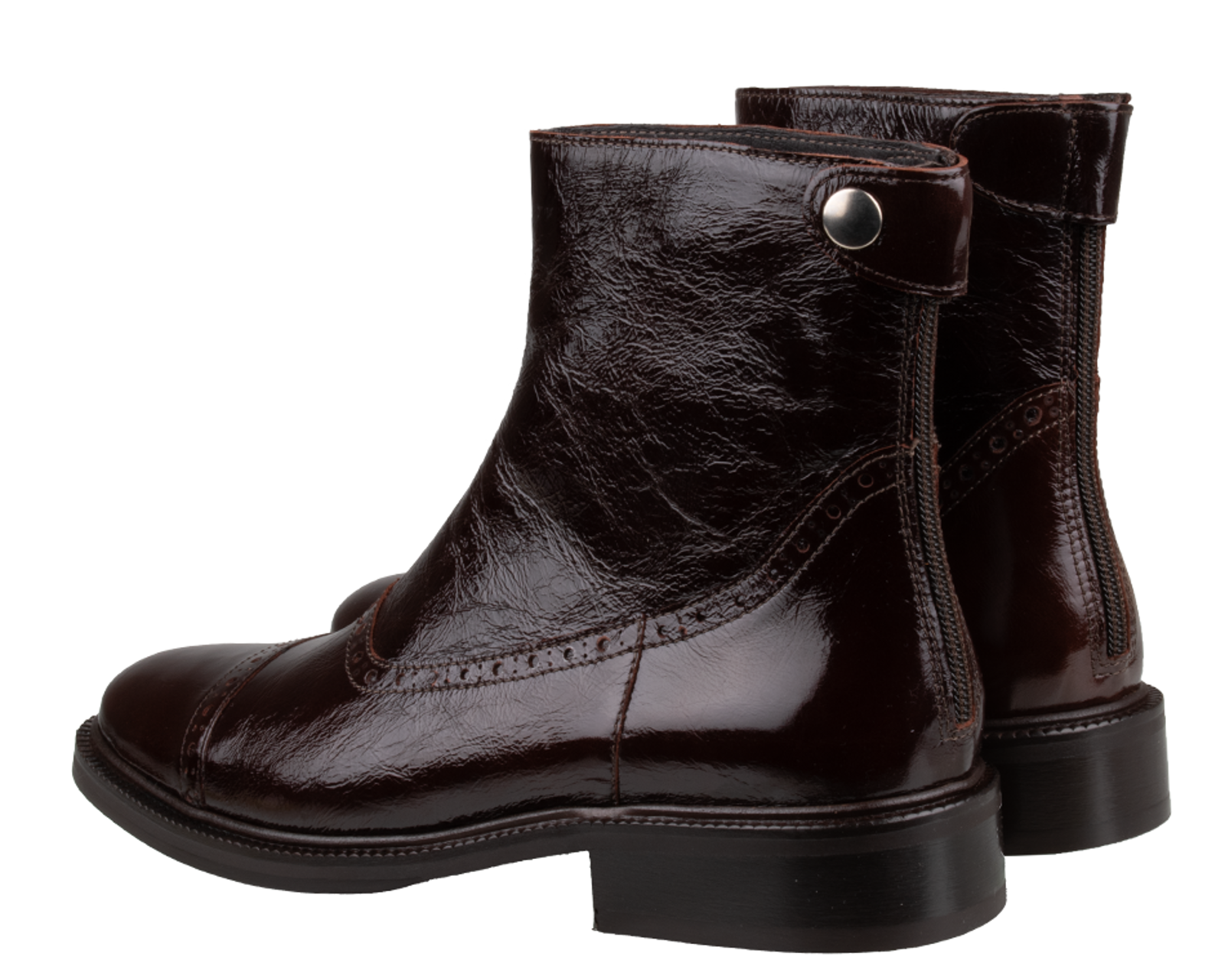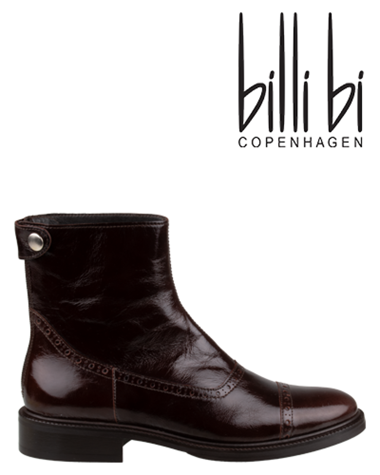 Billi Bi Copenhagen Ankle Boots. These Billi Bi Copenhagen A9005 Ankle Boots are made of patent leather and have a leather lining. These trendy women's boots feature a zipper closure, a rubber outsole, and a heel height of approximately 2 cm.