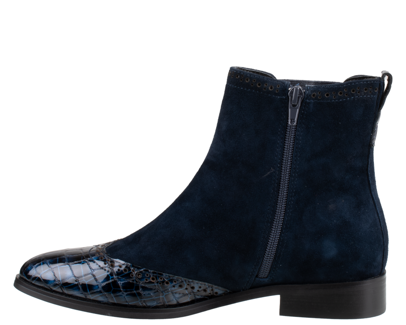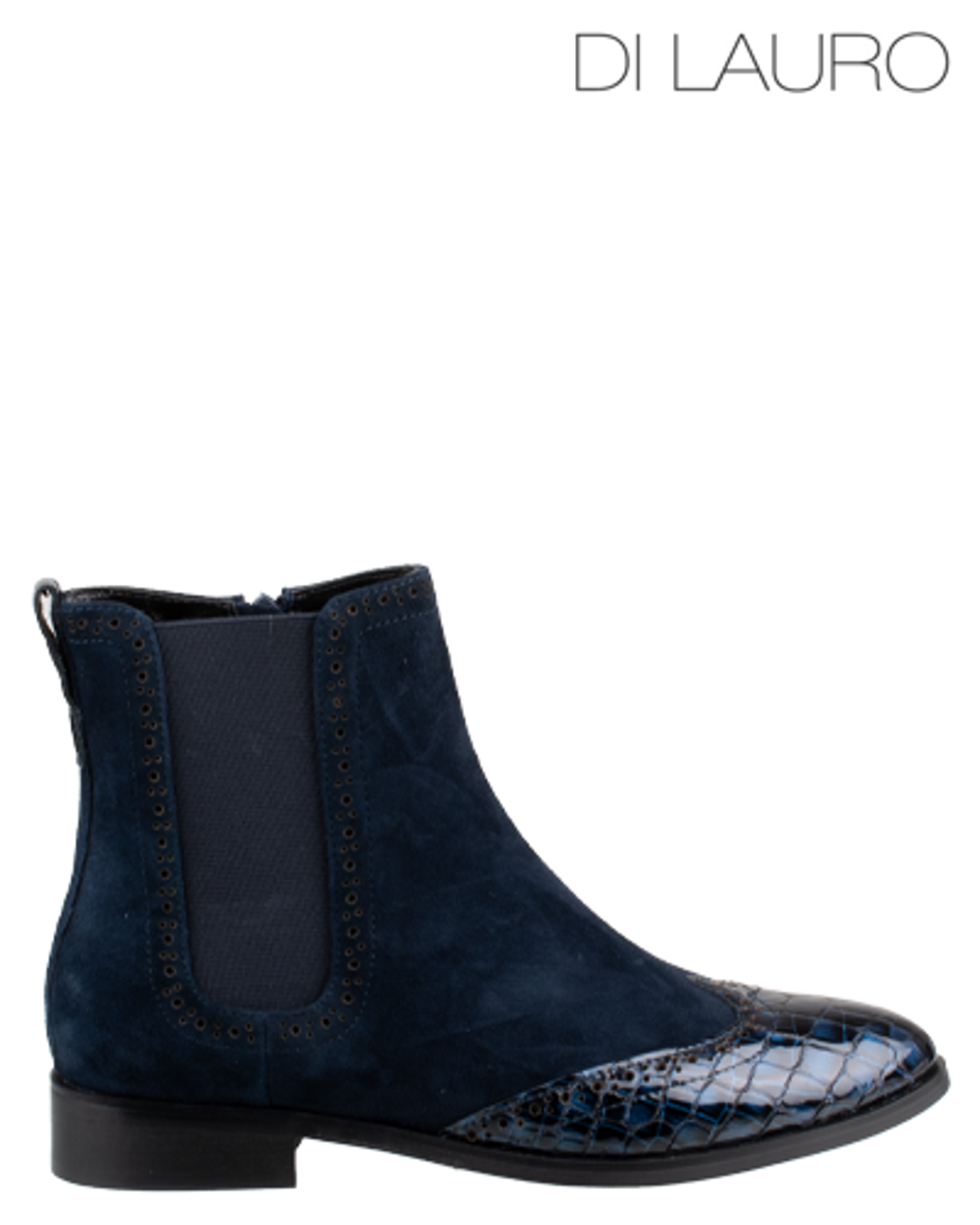 Di Lauro Ankle Boots. These Di Lauro Sheralyn 2 Ankle Boots are crafted from a combination of suede and patent leather and have a leather lining. These trendy women's boots feature a zipper closure and a rubber outsole.